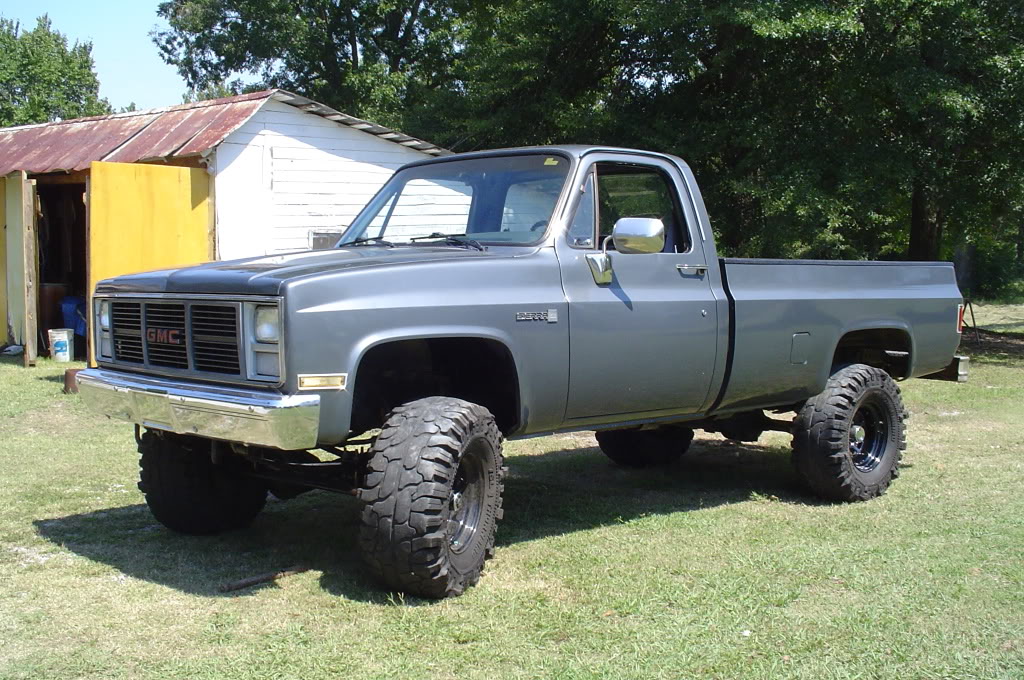 You guys asked for it, so here's ya some pictures of my 87' GMC before and then after a 6" suspension lift and 35"x14.50 thornbirds. Enjoy