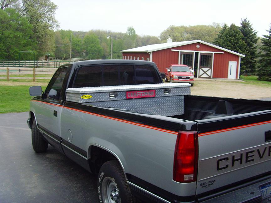 So I was browsing the CL looking for a nice toolbox to throw on my truck and came across this 2002 Craftsman. $90. I jumped on the deal and the guy even brought it to me free of charge. I set to work buffing it out and it is now installed. I put some one sided foam tape on the box so it wouldn't scratch my box though .
